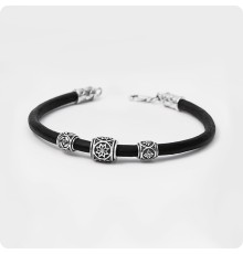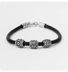 Кожаный браслет c тремя славянскими шармами (4мм)