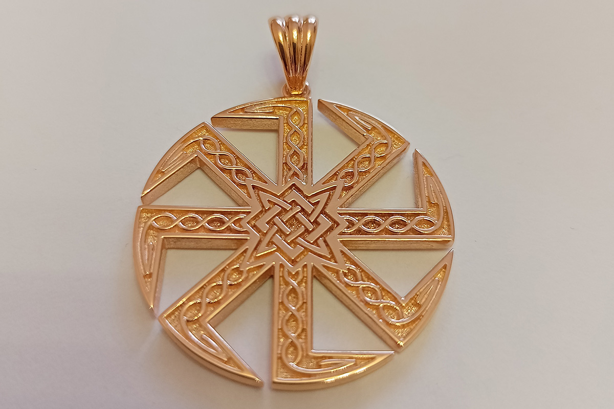 Двухсторонний оберег Алатырь-Коловрат с Солнцем из золота